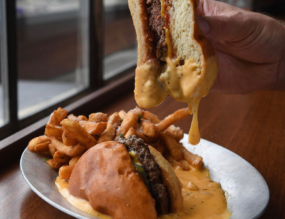 The Cheese Drunk Cheeseburger at The Walnut “might exceed your lifetime cheese quota.” (Photos: Duane Tinkey)