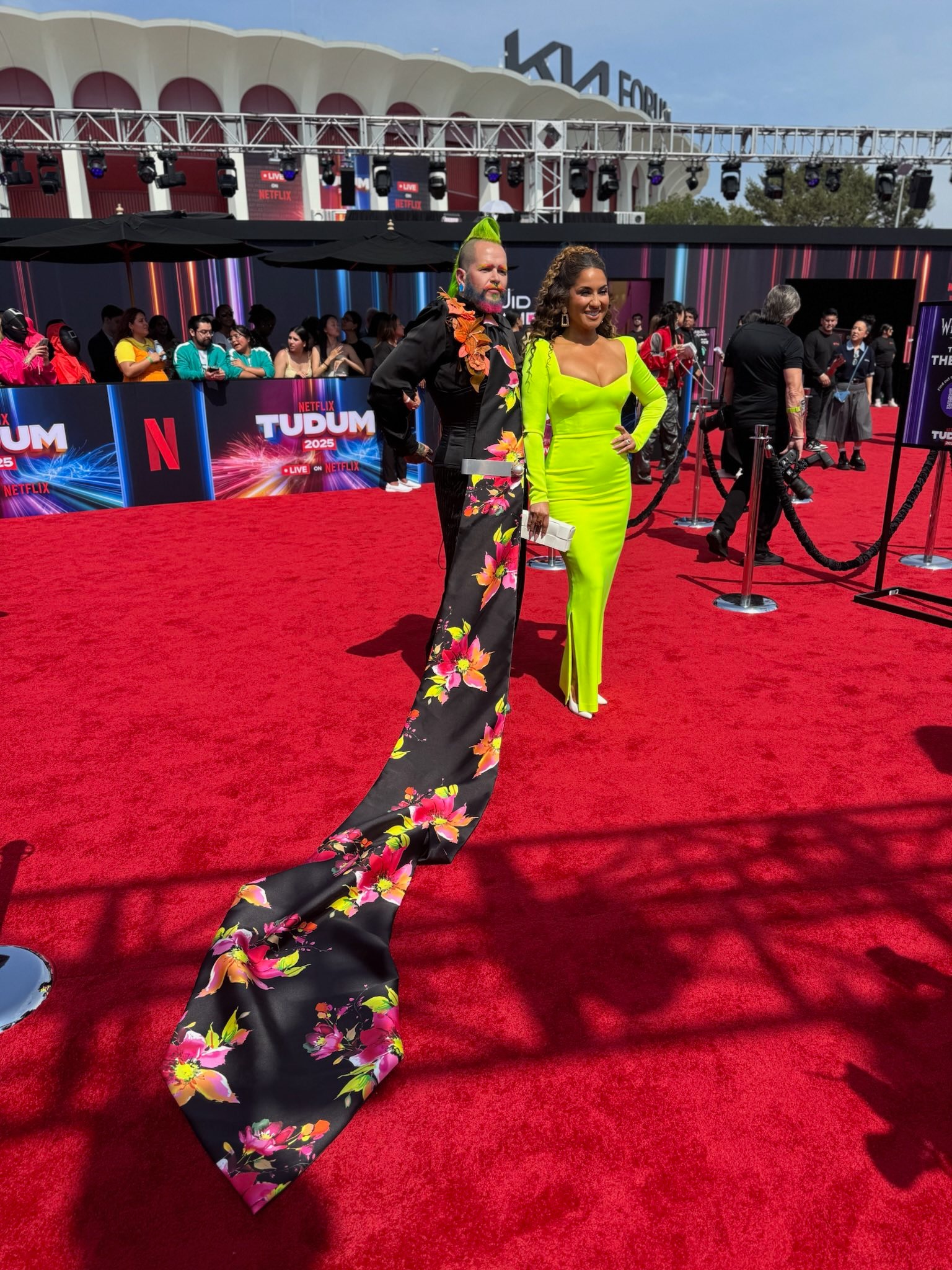 It Cake?" was in Los Angeles this past weekend for the network's "Tudum" publicity event. So who was he wearing on the red carpet? For starters, Des Moines Playhouse costume designer Angela Lampe, who made him a fabulous 11-foot necktie.