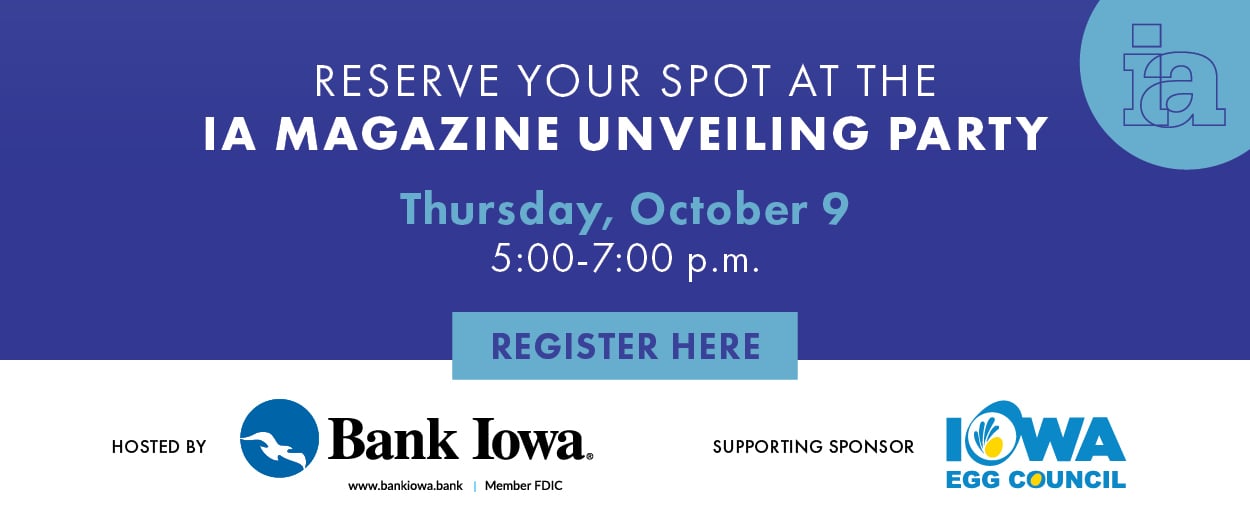 p.m. Thursday at Bank Iowa, at 1150 Jordan Creek Parkway in West Des Moines. Come on out; we’d love to see you.