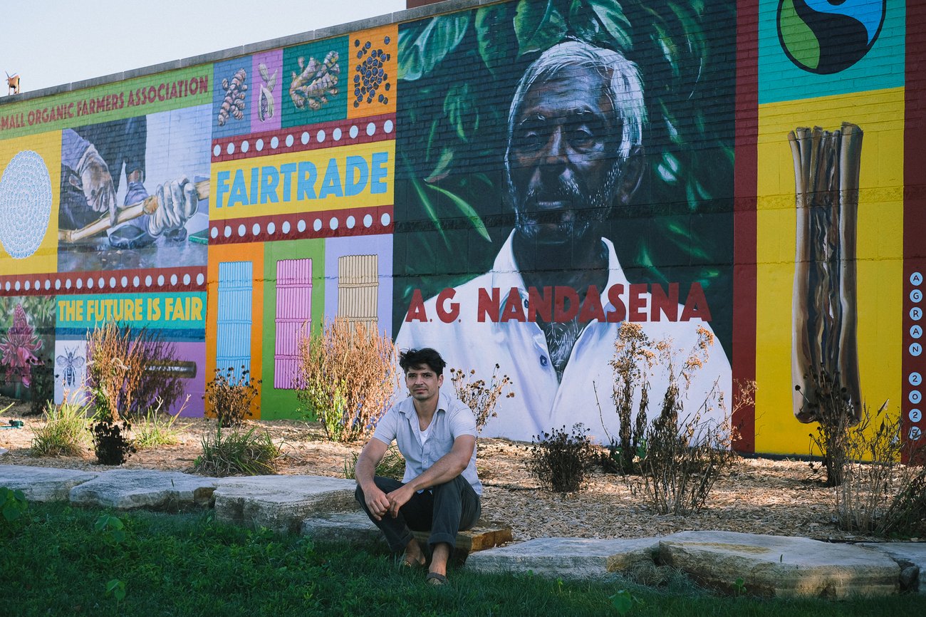 One of those new murals is at the beloved New Pioneer Food Co-op in Coralville, where the artist Thomas Agran painted a portrait of a Sri Lankan farmer named A.G. Nandasena. For years, Nandasena has grown cinnamon for the spice line from Frontier Co-op, which ensures that farmers get paid a fair price for their work.
