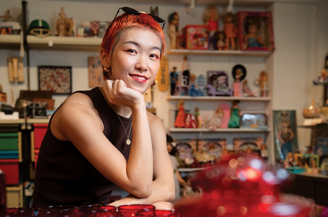 Chiyo Nishida at Funky Finds Vintage & Retro. They often browse through to snag perfect secondhand items. They like to thrift most of their clothing from shops around the metro. Photo: Duane Tinkey.